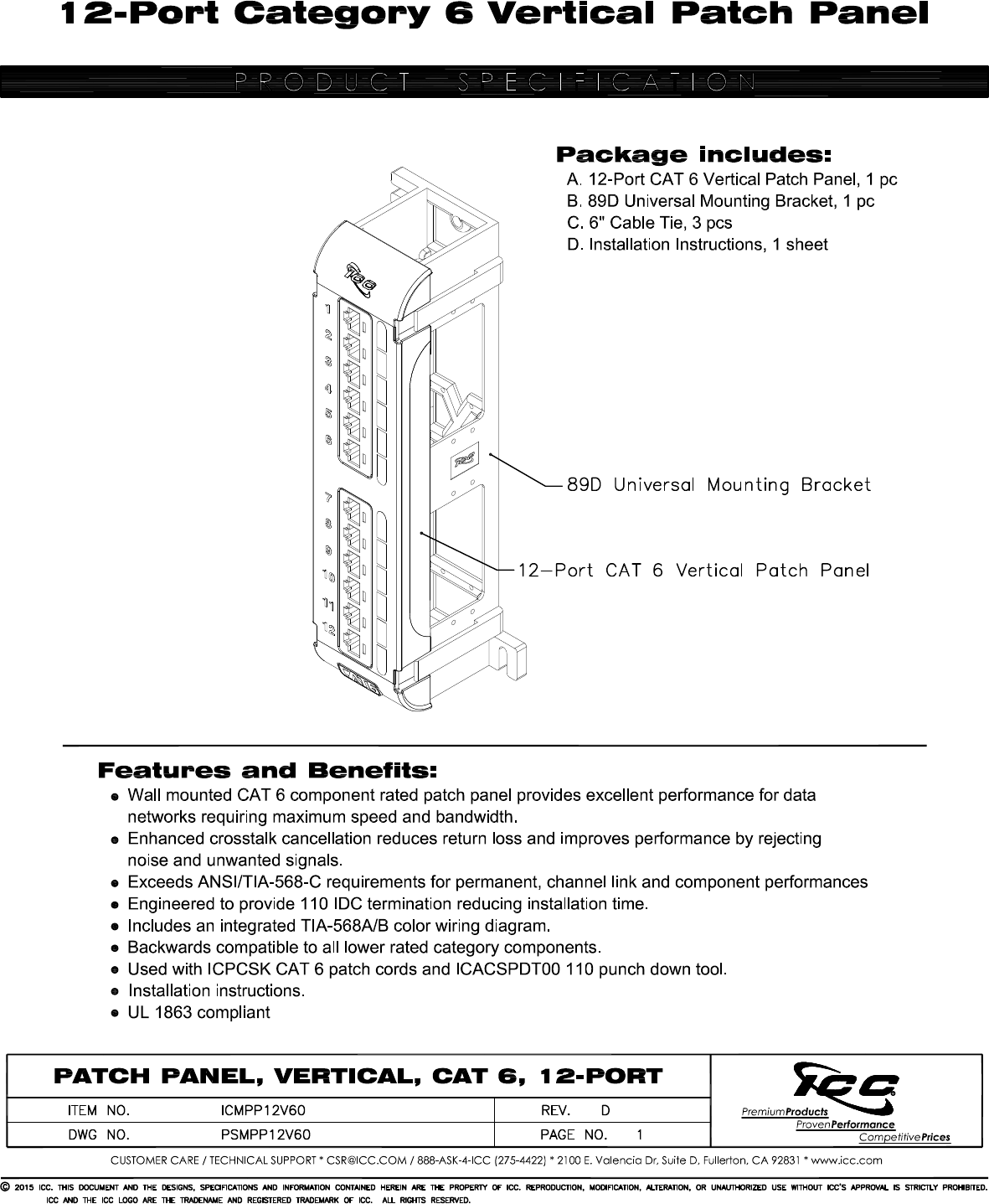 Browse online or download Datasheet for Patch panels ICC ICMPP12V60. ICC ICMPP12V60 patch panel User Manual
