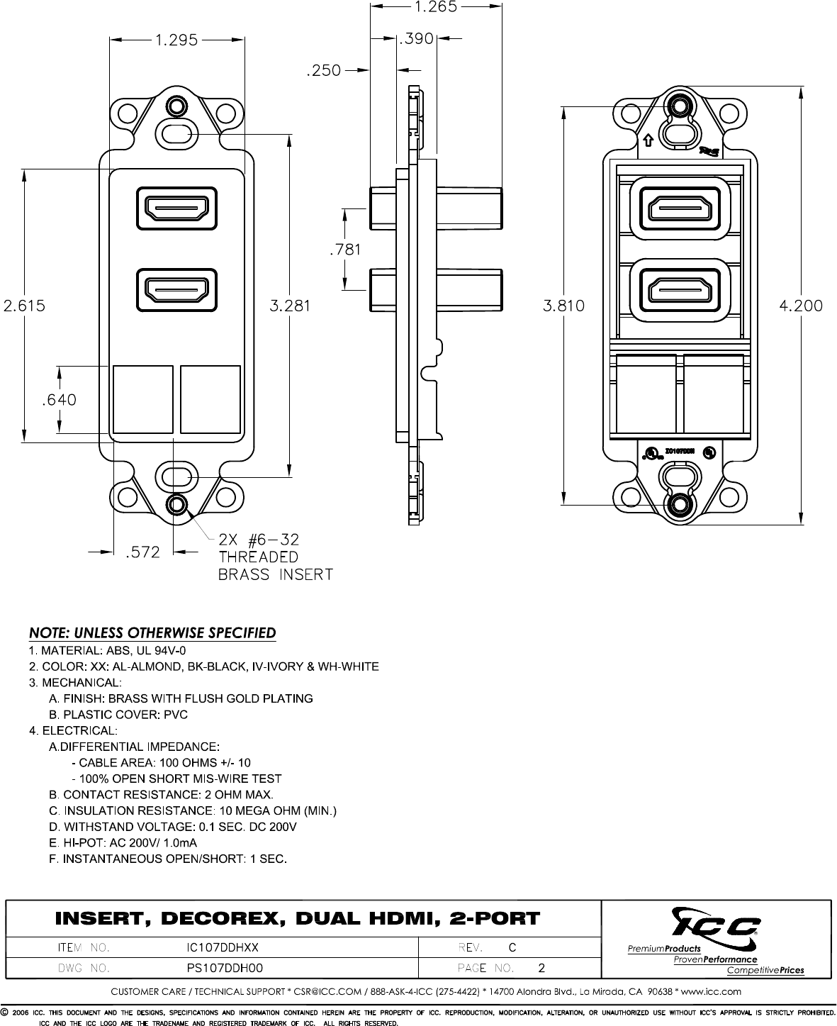Socket-outlets ICC ICRDS2F5AL Datasheet